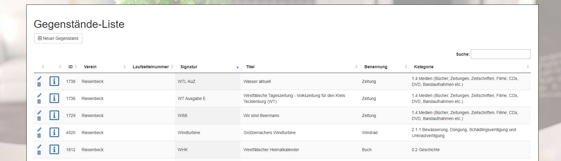 Signaturen, Kategorien, Laufzettelnummern und direkte Verknüpfungen zu Bildern & Dokumenten.